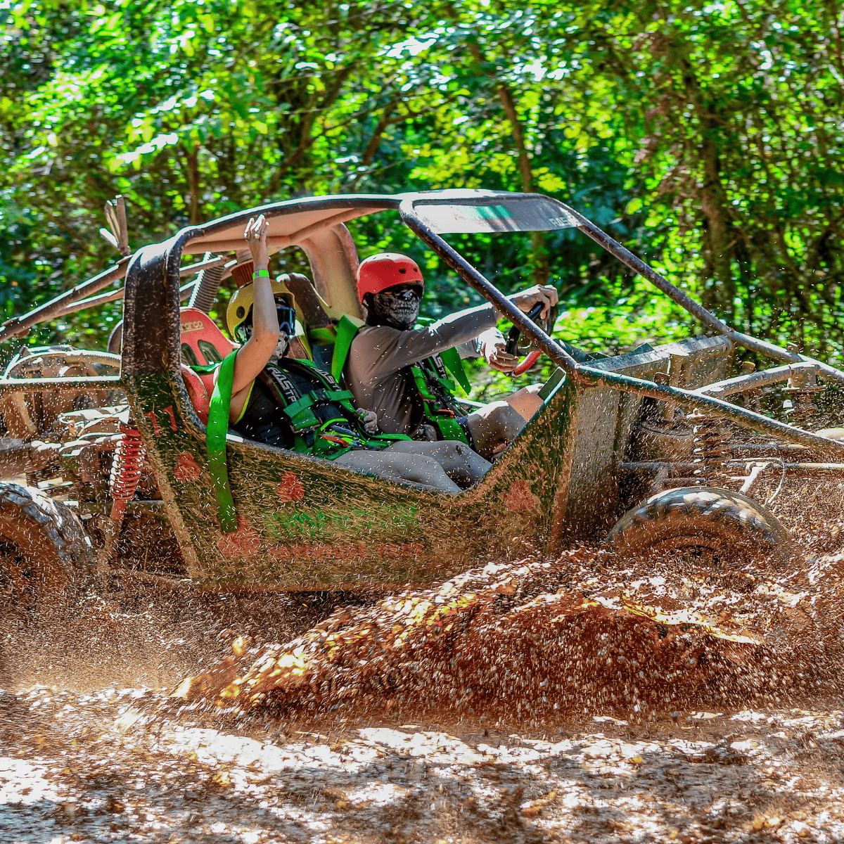 Buckle up — your adventure starts here! Get behind the wheel of an off-road buggy and feel the adrenaline as you blaze through wild trails. Explore the mystical Kayacoa Cave, tour an authentic coffee and cacao plantation, meet our charming farm animals, and cool off in a stunning crystal-clear cenote. Nature, culture, and tons of fun — all in one epic experience!